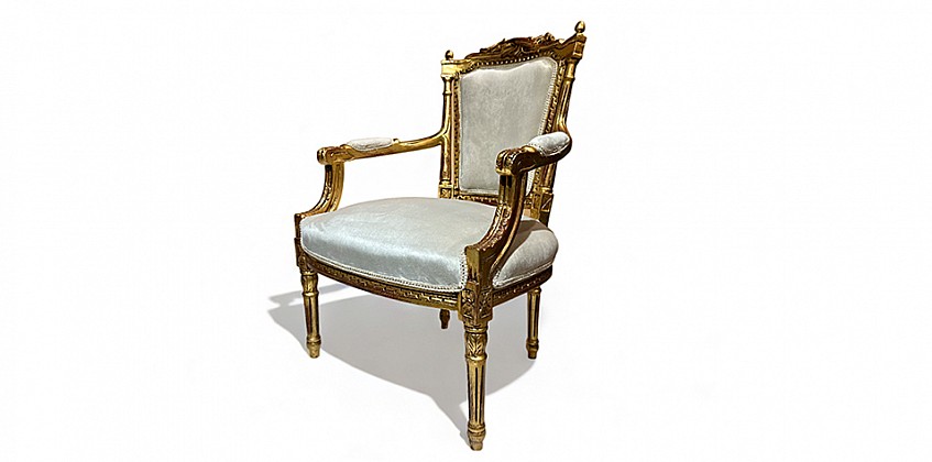 Πολυθρόνα κλασική , χειροποίητη ξυλόγλυπτη σε ξύλο μασίφ οξιάς , σε χρυσό φινίρισμα με παλαίωση. Πολυθρόνα σε Γαλλικό στυλ, εμπνευσμένη από τη γαλλική κουλτούρα.Τα έπιπλα Λουί Κένζ είναι από τα πιο δημοφιλή και τα πιο αντιπροσωπευτικά των κλασικών επίπλων. Η κλασική πολυθρόνα Λουί Κένζ είναι επεδενδυμένη με ύφασμα σε ΄λευκό βελούδο, ενώ ο σκελετός της παρουσιάζεται σε χρυσό φινίρισμα με παλαίωση. Αυτό το κλασικό έπιπλο εποχής έχει μια ξεχωριστή σιλουέτα και προσθέτει κομψότητα σε κάθε δωμάτιο. Η πολυθρόνα αναδεικνύει την ατέλεια του χειροποίητου για αυτό και πολλές ενώσεις φαίνονται πολυκαιρισμένες.(K1750)