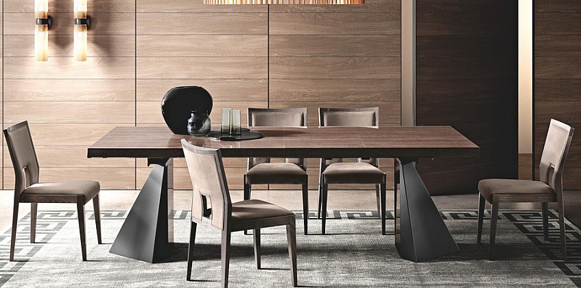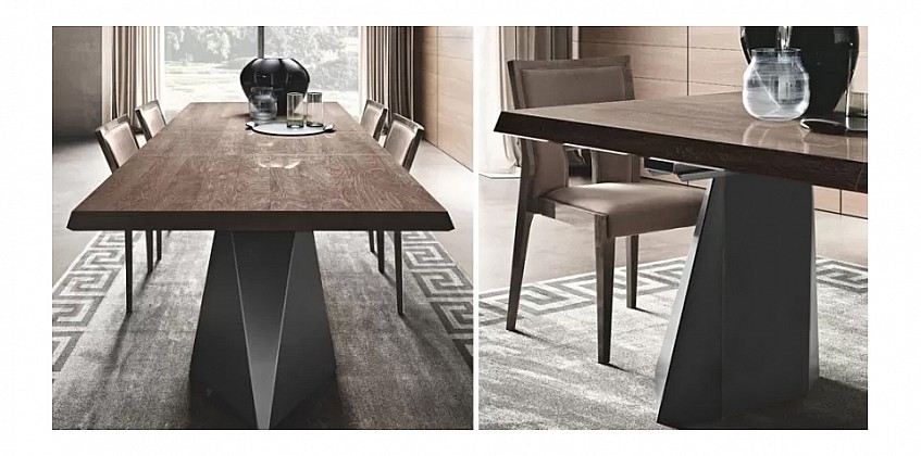 Το τραπέζι τραπεζαρίας είναι επεκτεινόμενο με δύο προεκτάσεις των 50 cm που προσφέρει άφθονο χώρο για φαγητό και είναι ιδανικό για μεγάλα οικογενειακά γεύματα. Οι εντυπωσιακές βάσεις του τραπεζιού είναι ανθρακί, κατασκευασμένες από χάλυβα. Ο μηχανισμός επέκτασης που διαθέτει το τραπέζι τραπεζαρίας, έχει μέγιστη έκταση 4 μέτρα (με επιπλέον προσθήκες), σε ράγες από αλουμίνιο, με εγγυημένη ομαλότητα και σταθερότητα.