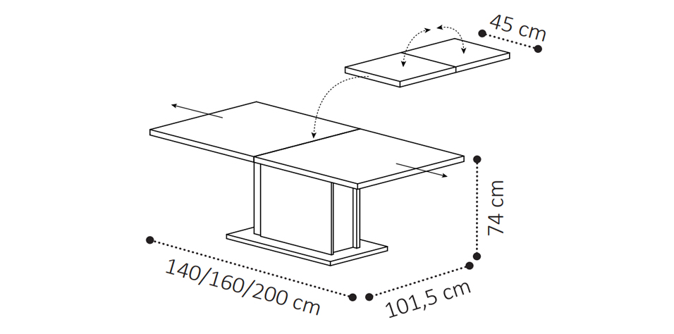 Το τραπέζι διατίθεται και σε διάσταση 145cm, 160cm & παρέχεται η δυνατότητα επιπλέον προσθήκης*