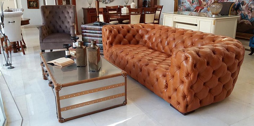 Οι τύπου Chesterfield καναπέδες μας, παρουσιάζονται σε γνήσιο δέρμα. Ένα διαχρονικό έπιπλο που φαίνεται τέλειο σε μοντέρνο αλλά και κλασικό χώρο. Ο καναπές είναι Αμερικάνικης κατασκευής, φτιαγμένος με τον παραδοσιακό χειροποίητο τρόπο, από μασίφ, ενισχυμένο σκελετό εξαιρετικής στήριξης. Η επένδυσή του είναι από 100% γνήσιο δέρμα σε καπιτονέ σχέδιο, το οποίο μετά από μία σειρά επεξεργασιών, έχει διαμορφωθεί σε ένα εντελώς φυσικό προϊόν που είναι ταυτόχρονα, μαλακό και ζεστό στην αφή, ελαστικό και ανθεκτικό. Η εφαρμογή του καναπέ Chesterfield σε ένα σπίτι ή σε μία επαγγελματική αίθουσα παρέχει ένα επίπεδο κομψότητας, χάρη στον ελκυστικό σχεδιασμό του και μπορεί να επιλεγεί ως το κεντρικό στοιχείο, που θα κάνει τη διαφορά.