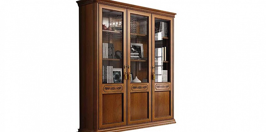 Η συλλογή επίπλων TORRIANI αντιπροσωπεύει την ιταλική κομψότητα και θα διαμορφώσει μία πολυτελή διακόσμηση στο χώρο του γραφείου σας. Η βιβλιοθήκη γραφείου παρουσιάζεται σε φινίρισμα καρυδιάς. Ο σχεδιασμός του επίπλου γίνεται πολύτιμος από ένθετα σφενδάμου και διακοσμητικά σκαλίσματα. Η βιβλιοθήκη γραφείου διαθέτει τρεις γυάλινες πόρτες με κλειδαριά, ξύλινα ράφια, αντικέ λαβές, ενώ ειδική επεξεργασία που έχει δεχτεί το τζάμι επιτυγχάνει την μοναδικότητα του επίπλου. Συνδυάστε τη βιβλιοθήκη, με το γραφείο από την ίδια Ιταλική συλλογή επίπλων.