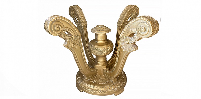 Ξυλόγλυπτη βάση τραπεζιού σκαλισμένη στο χέρι, σε μασίφ ξύλο οξιάς και χρυσό φινίρισμα. Στην επιφάνεια του τραπέζιου μπορεί να τοποθετηθεί στρογγυλό τζάμι. (K4700)
